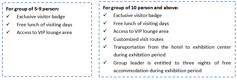- Fast track entry, free catalog, VIP lounge
